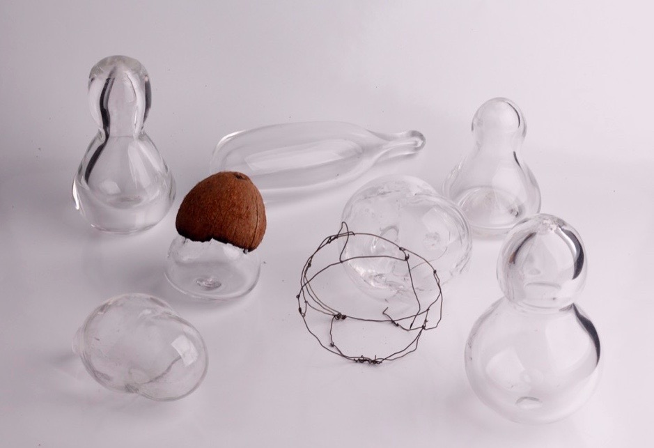 This is a collection of objects made out of glass, in Cencal. a project that became real in the photography studio. They started as emotional objects, with the shape of a Cabaça, and then looking like a family that is trying to explain something... feelings, a specificatmosphere, some conditional and unconditional things for humans, about memory.