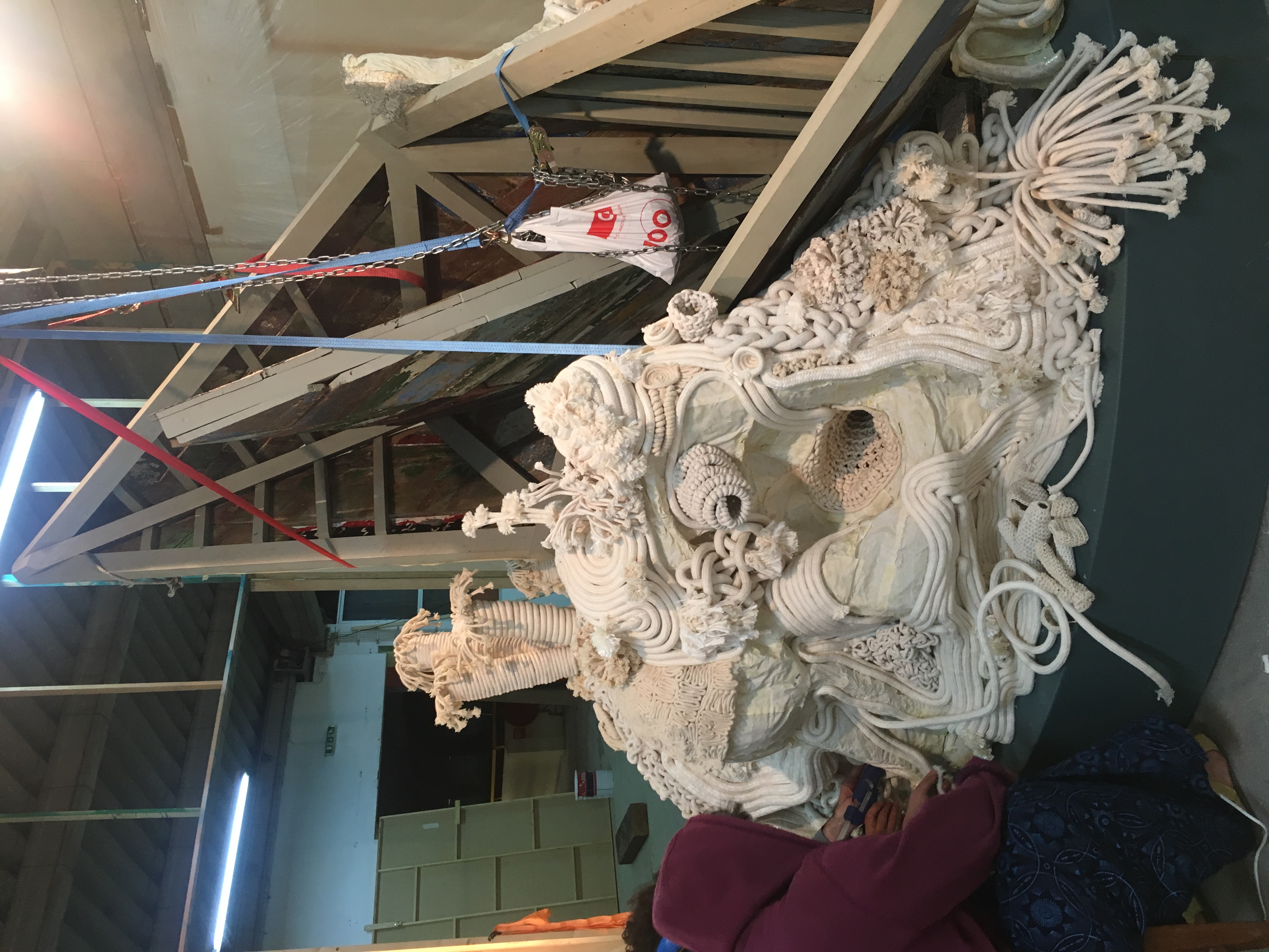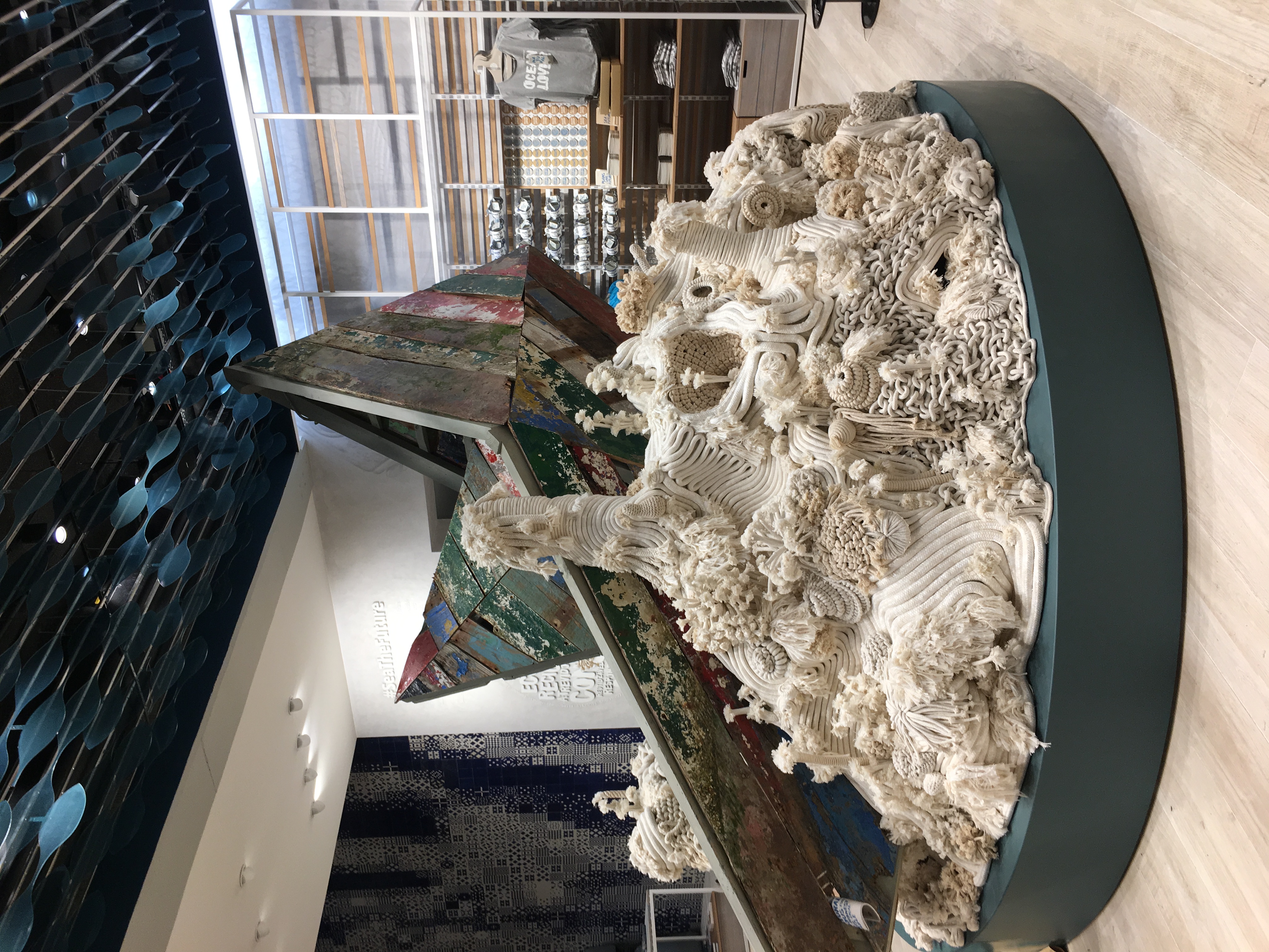 We worked with rope to create the corals for an installation created inside the store. The Oceanarium store decided to erase plastic from their decoration and this way we worked with organic materials only for the design of the new décor. This big installation is in the middle of the store next to the Aquarium at Expo 98.